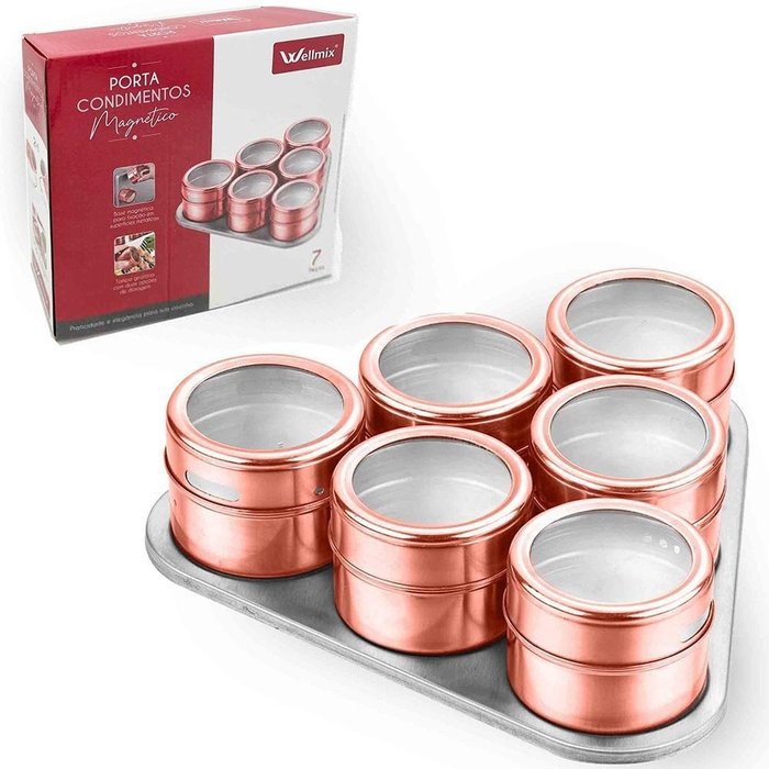 | Nome | Porta Temperos Condimentos Magnetico Rose Gold 7 Peças Em |