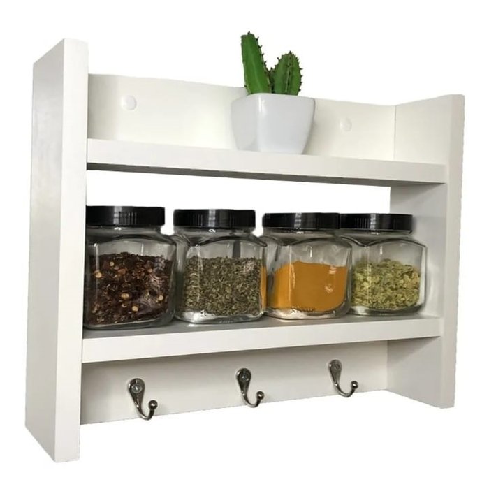 Nichos JPL Design Os Nichos da JPL Design é uma excelente opção para a organização e decoração para sua casa. É funcional e prático, de fácil de manusear, com um visual moderno e elegante. Perfeito para compor a decoração de diversos ambientes ou como suporte para objetos decorativos na composição dos mais variados designs.Como conservar: Limpeza: Deve ser feita com pano macio e seco ou levemente umedecido com água e sabão neutroDados Técnicos:Modelo: Porta temperos com Ganchos Medidas:33x26x8 cm Peso:2,0 Kg Estrutura: 100% MDF 15 mm Revestimento: Melamina Cor: Branco Suporta até 05 KG. Produto entregue montado Pronto Para Instalação. Produto não acompanha potes de temperos e utensilios.Itens Inclusos:Suportes de instalação Bucha, parafusos e Cantoneiras. Garantia de 90 dias contra defeitos de fabricação.