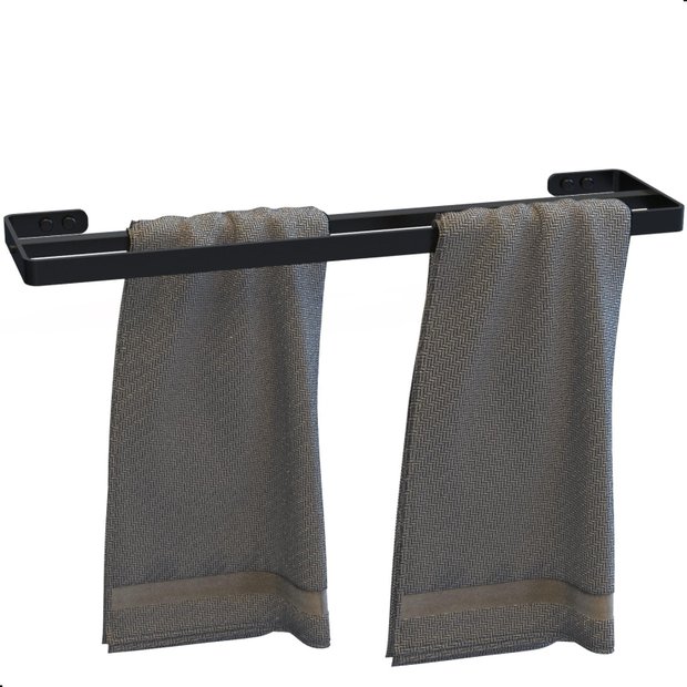 1. Elegância Duradoura: O acabamento em pintura eletrostática epóxi preto fosco confere ao suporte toalha um visual elegante e contemporâneo, que se mantém sofisticado ao longo do tempo.