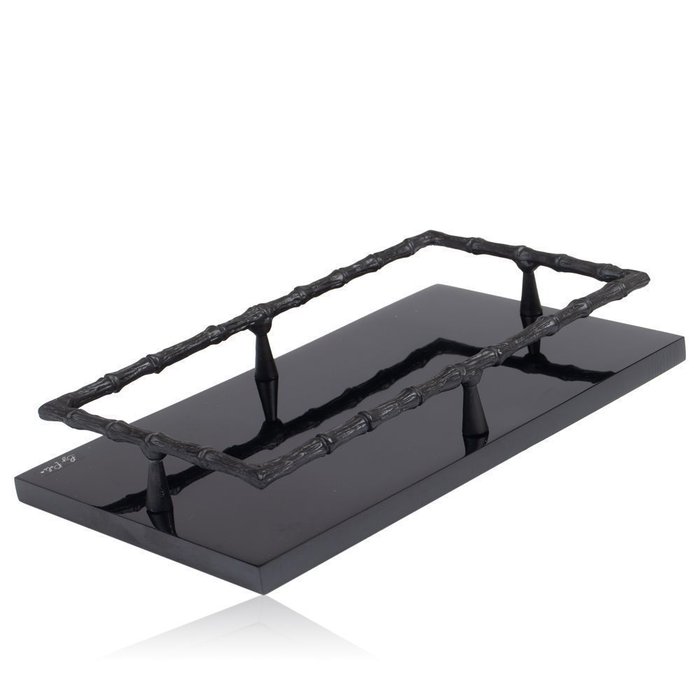 Porta Toalha Papel Resina Pequeno Bambu Preto Fosco