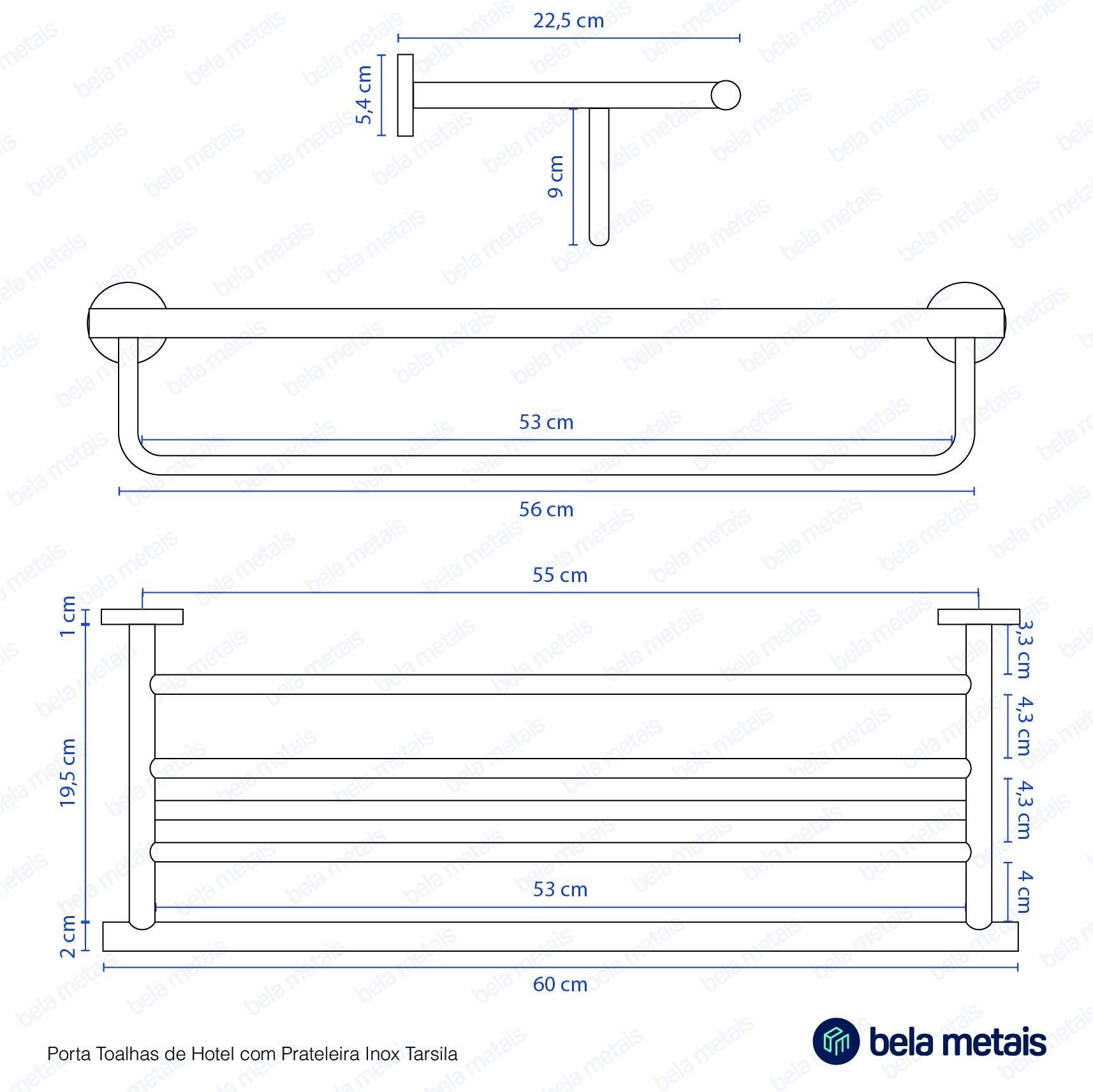Porta Toalhas de Hotel com Prateleira Inox Tarsila Bela Metais