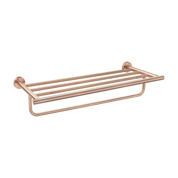 Porta Toalhas de Hotel com Prateleira Inox Tarsila Bela Metais Rosé Gold