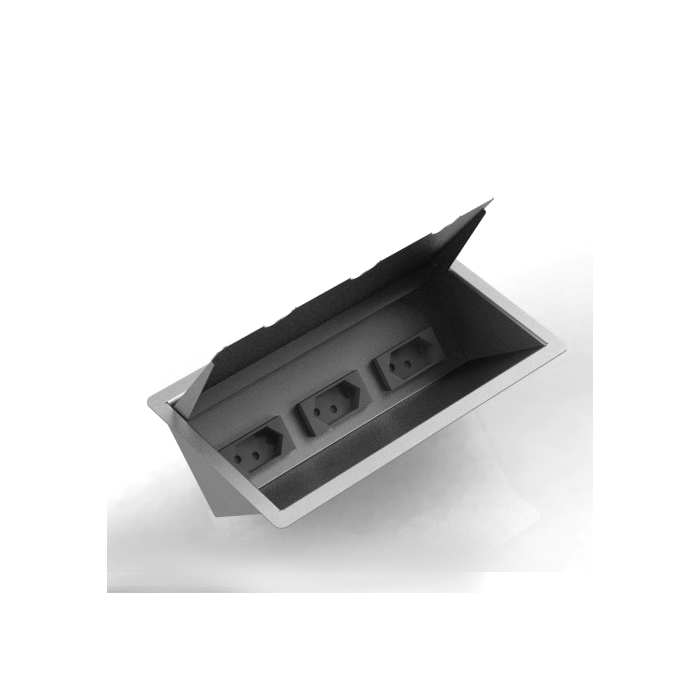 Caixa de tomada fabricada em aço inox 304 com alto padrão de qualidade. Acompanha 3 tomadas de 10A.A caixa possui 3 saídas para os fios e pode ser instalada nos mais diversos móveis corporativos como, mesas de reuniões, ou de escritorio, até mesmo cozinha.CARACTERÍSTICAS- Tipo de Abertura manual- Fabricada em aço inox 304 e plástico de alta qualidadeDIMENSÕESDimensões externas 220mm (comp) x 123mm (lag) x 75mm (Alt )Dimensões para furo de instalação 207mm x 108mmCozix aguarda sua compra!