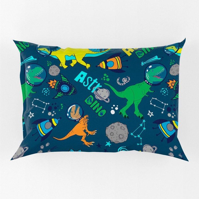 Porta Travesseiro Fronha Avulsa Astrodino 70cm X 50cm - Estampa Digital Juvenil Infantil Moderno Astronauta Dinossauro