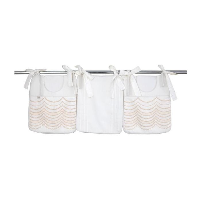 O porta treco é um quebra galho mesmo, a gente pode colocar tudo quanto é coisa dentro dele, pode dar a ele função de porta fraldas, além de fraldas você vai conseguir organizar outros itens de higiene do bebê, como lencinhos umedecidos, pomadas, talquinho, perfume etc. O porta Treco Lelis possui detalahes em renda importada e perolas, que valoriza o produto e agrega valor na decoração do quartinho. O porta treco é composto por 03 peças, sendo elas: