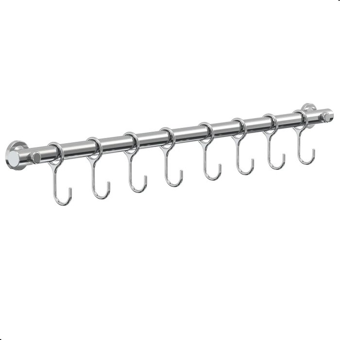 Porta Utensílios e Talheres 50cm com 8 Ganchos Cromado Fs Cromado
