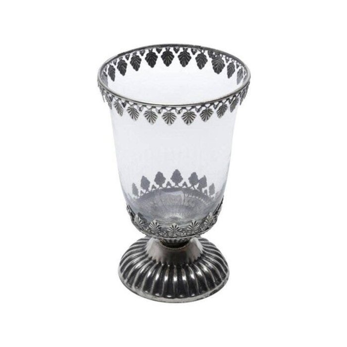 Porta Velas de Vidro com Borda e Base em Ferro Pine 12,5cmx12,5cmx19,5cm Rojemac Cinza