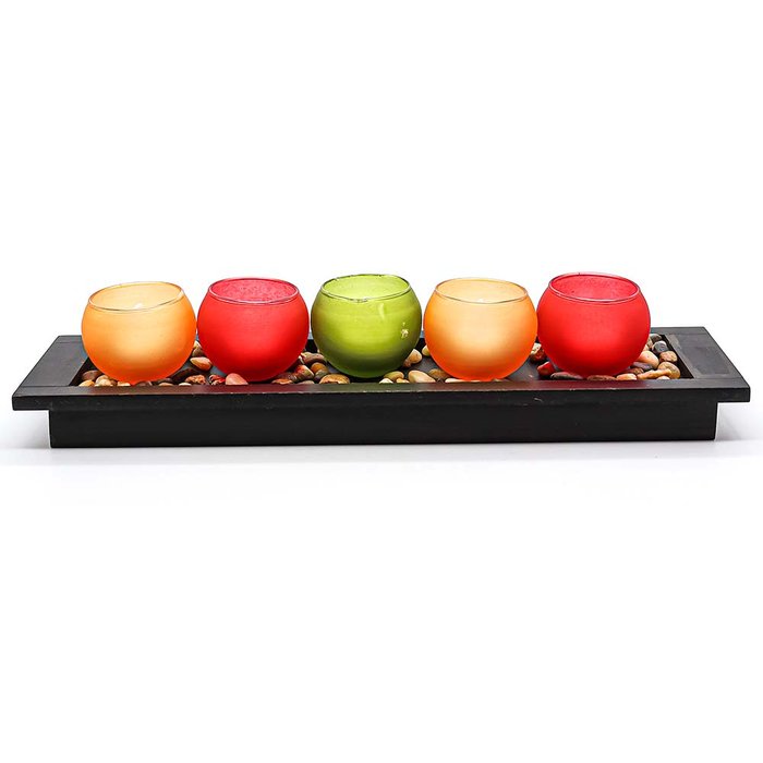 Porta Velas Decorativas 6 Peças, crie momento intimista com esse lindo porta velas, ela possui 5 mini porta velas com 5 velas á pilha, e ainda acompanha um suporte com algumas pedrinhas para compor uma linda decoração.