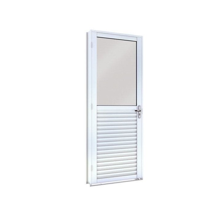 Porta Veneziana de Aço com Vidro Abertura Lado Esquerdo 215cmx0,86cm Lucasa Branco
