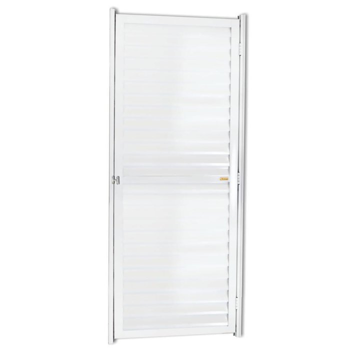 A Porta Esquerda em Alumínio L-25 180x60cm Branca recebe pintura eletrostática que garante excelente acabamento, resistência e qualidade, e é perfeita para instalação em banheiro, despensa e área de serviço.