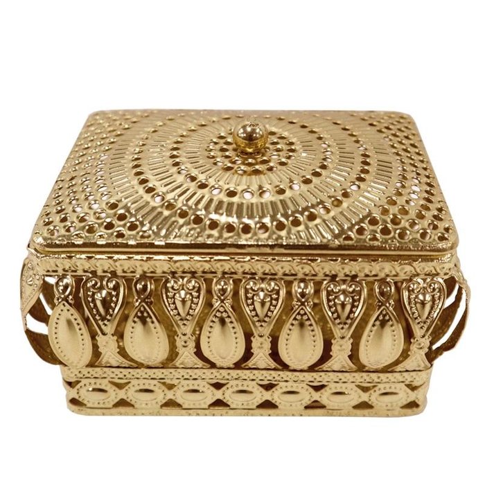 Especificações Complementares: Referência: 26854 Marca: L’hermitage Linha: Kalifah Cor: Dourado Material: Ferro Dimensões do Produto (LxCxA) cm: 9x12x7,5 Peso (kg): 0,161 Garantia: 3 meses