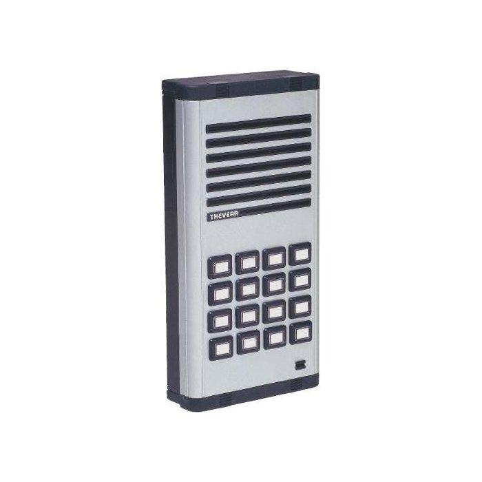Placa Externa THEVEAR Danubio 16 Pontos é um painel instalado próximo a porta de entrada de um edifício de apartamentos. Neste painel temos um alto-falante, um microfone de eletreto, para o visitante comunicar-se com os apartamentos e uma série de chaves, também chamados de ramais correspondentes ao número de apartamentos do prédio. Placas de 60 pontos (ou ramais). Para chamar um apartamento, basta o visitante pressionar o botão (chave) da placa de rua correspondente ao número do apartamento que deseja falar. Os interfones são Ligados através de 2 fios(1 par) por unidade.