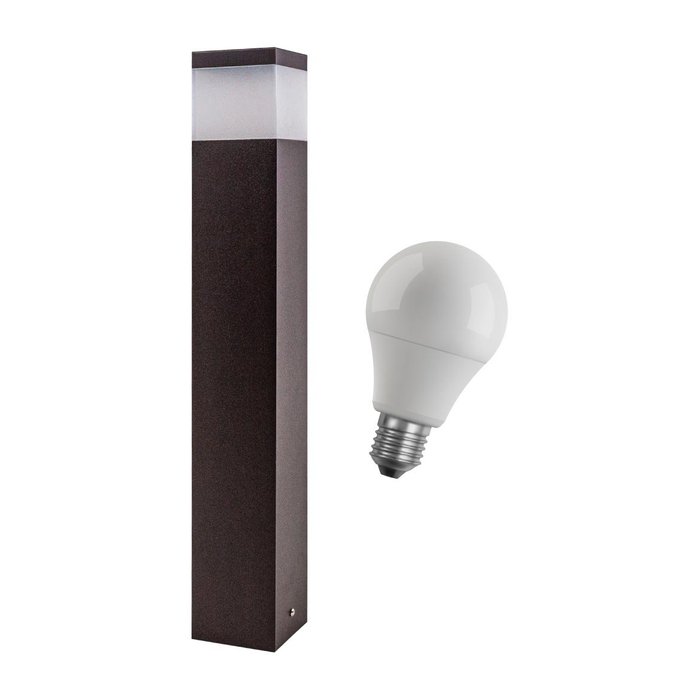 Poste Luminária Jardim 50cm Em Alumínio Marrom + Led 12w Br. Quente St222 Marrom
