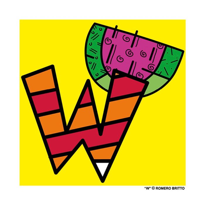 Poster Alfabeto - Romero Britto Letra W - Medidas 21 X 21 CM