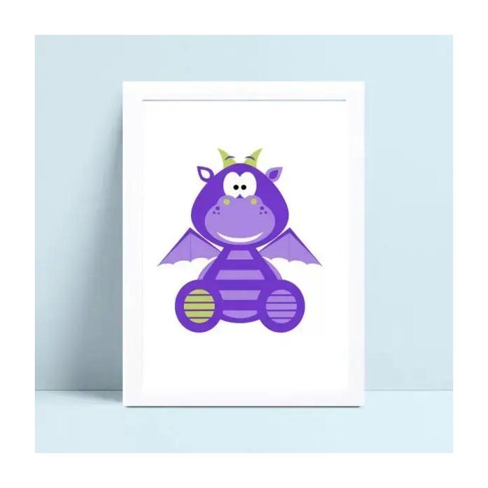 Quadro com moldura, Poster infantil quadro monstrinho roxo.
