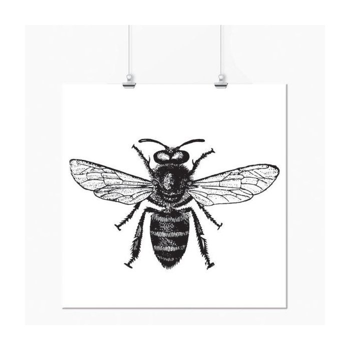 Pôster - Inseto Abelha Preto e Branco - 30x30cm
