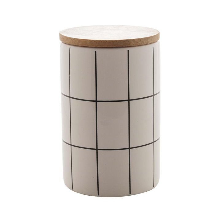Pote Cerâmica Com Tampa Bambu Turim Branco 10X12Cm Lyor