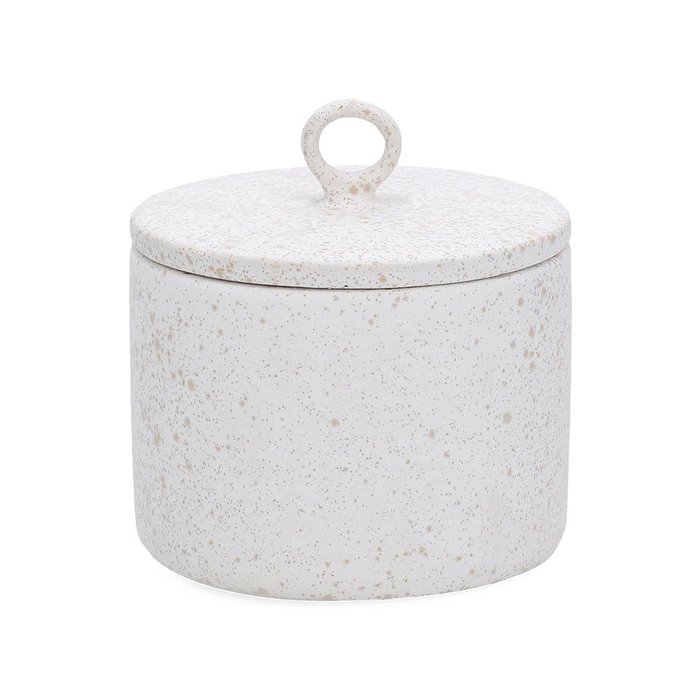 Pote com Tampa Decorativo em Ceramica Off White Mart 17cm Off White