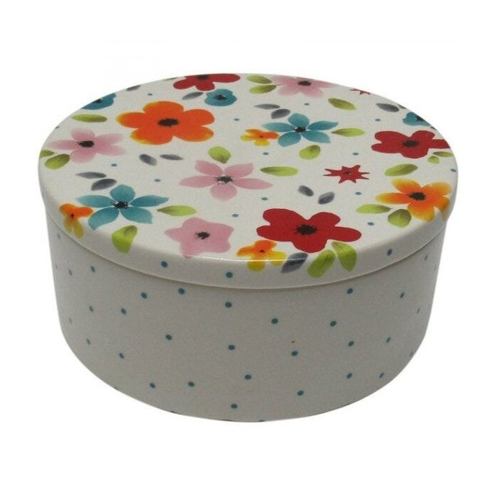 Pote de Cerâmica Com Tampa Flowers And Dots 16,5cm x 8cm Urban
