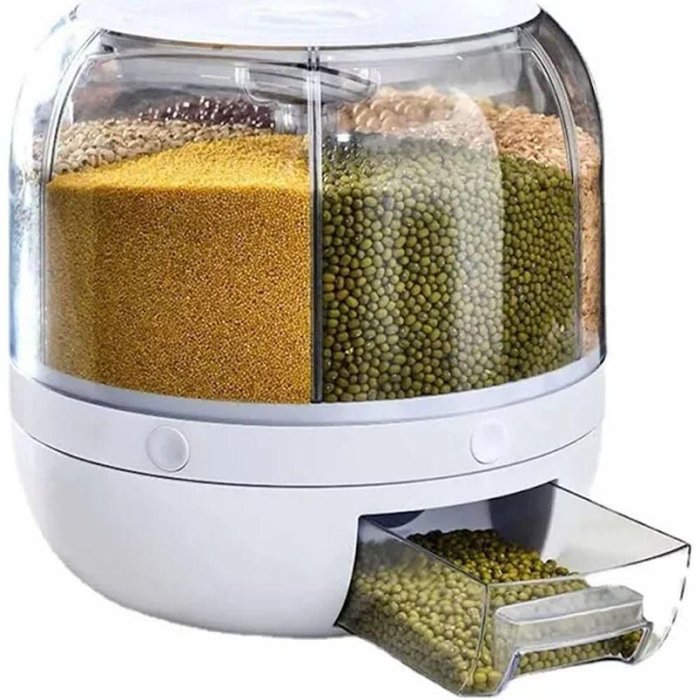 Pote de Grãos Giratório para ArmazenagemExperimente a praticidade e a eficiência do Pote de Grãos para Armazenagem, mas também é a solução perfeita para preservar a frescura e a qualidade dos seus alimentos por mais tempo. Com este pote inovador, você pode manter seus grãos, cereais, e outros alimentos secos de forma organizada e protegida contra a umidade e os insetos. Características Principais: Preservação da Frescura
