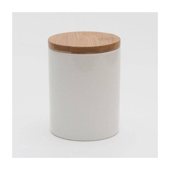 Pote de Porcelana com Tampa Bamboo White 700ml 10cmx10cmx12cm Rojemac