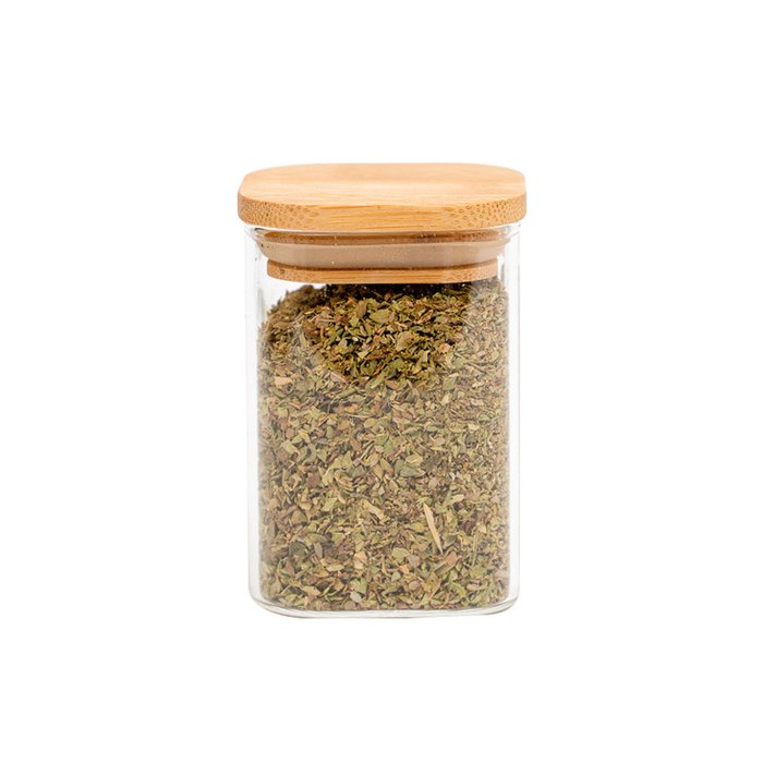 Pote de Vidro 200ml com Tampa de Bambu Hermético Quadrado - Tüd NATURAL