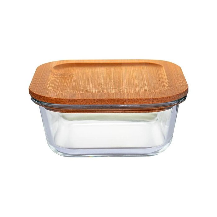 Pote tigela hermética de Vidro Quadrado com Tampa de Bambu 300mL - Casambiente