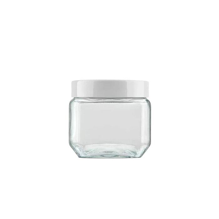 Pote de Vidro Quadrado Porta Mantimentos Tampa Rosca 800ml - Branca Branca
