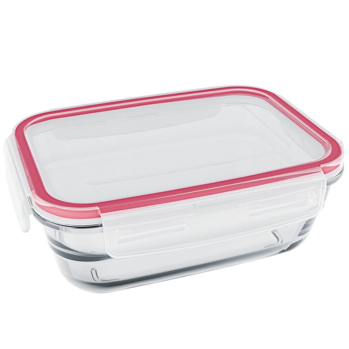 Pote De Vidro Retangular 850ml Marmita Tampa Hermética Com Travas Laterais Marinex Facilita Transparente e Vermelho