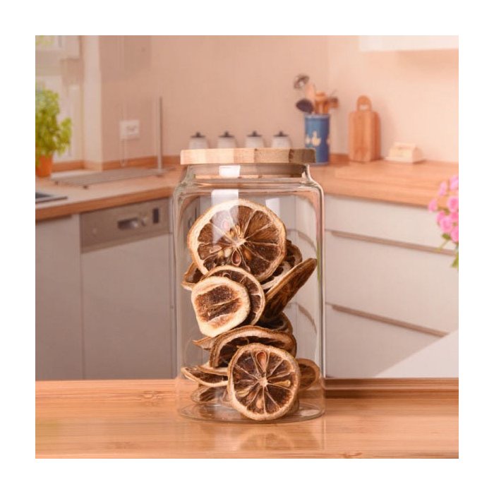 Pote De Vidro Tampa Selada De Bambu Cozinha 1000ml