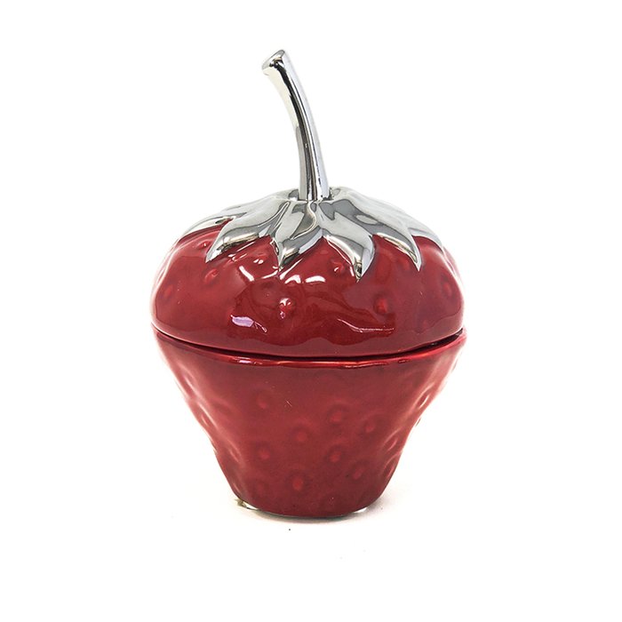 Pote Decorativo Morango Cerâmica Potiche Vermelho Tampa 15cm Vermelho
