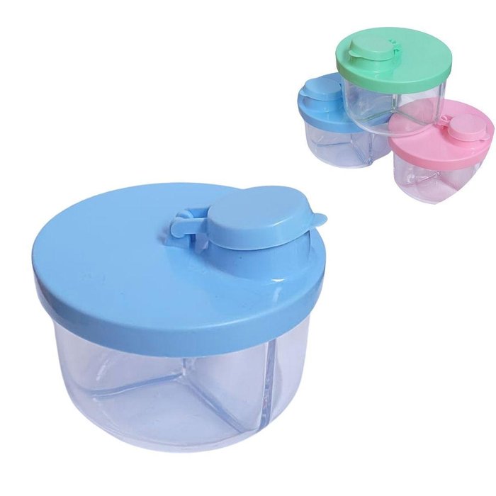 Porta leite em pó a alternativa perfeita para facilitar o dia a dia e auxiliando no preparo de alimentos para os pequenos, armazenamento de alimentos, entre outros. Com 3 divisões internas, trava para tampa de segurança, é ideal para carregar os mantimentos em pó necessários durante viagens e passeios.