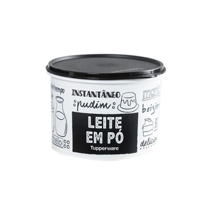 Pote Leite em pó mantimento PB FUN Preto e Branco Tupperware