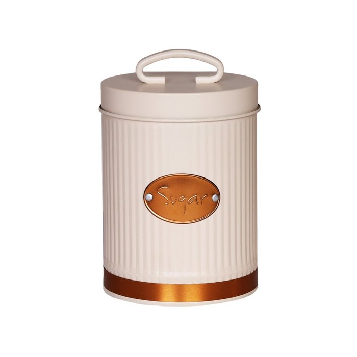 Pote para Açúcar em Aço Inoxidável com Tampa Estilo Retrô - Bege - 11x15cm