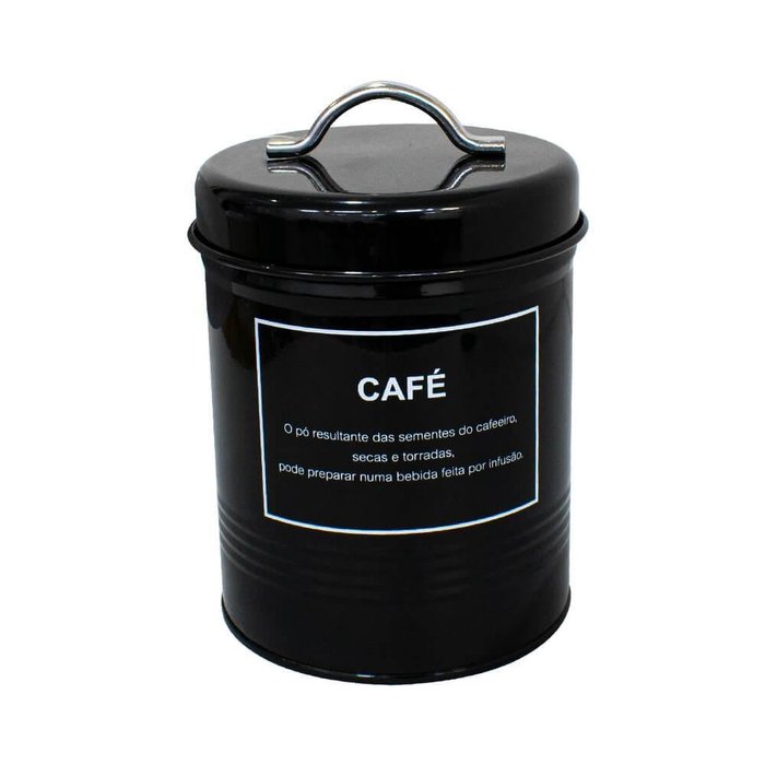 Pote para Café em Metal Preto Redondo 1,65L - Casambiente