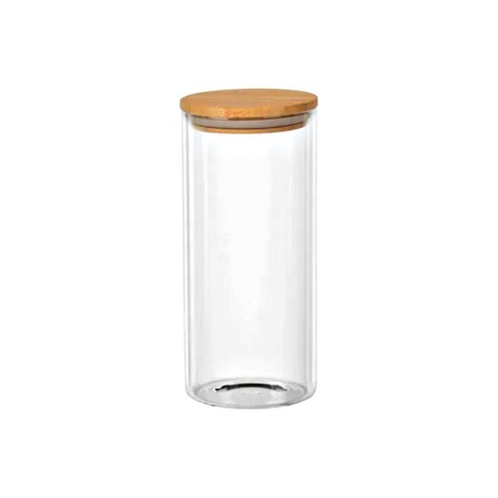 Porta mantimento redondo em vidro borossilicato com tampa de bambu 1,4L