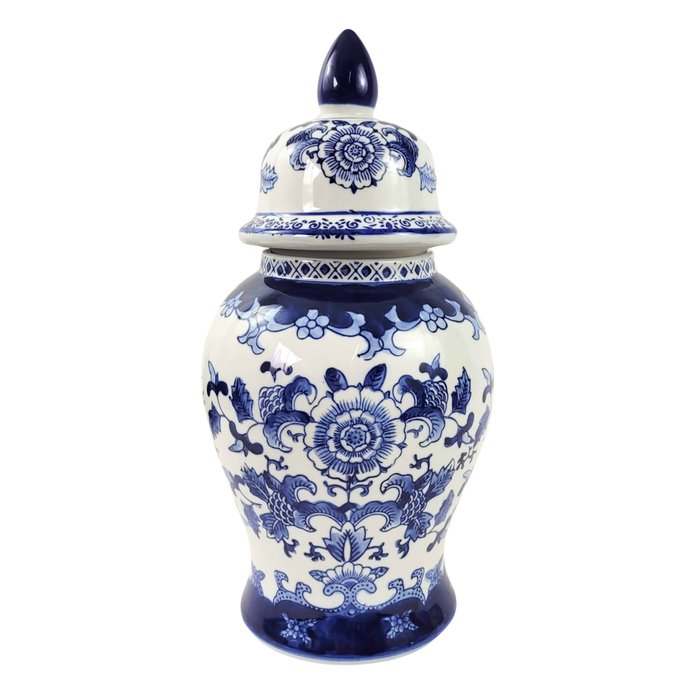 Pote Potiche Azul e Branco 37x19cm Porcelana Decoração Branco, azul