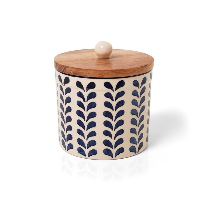 Sua estrutura é feita 100% em cerâmica, com acabamento refinado e detalhes pintados que trazem um toque artístico à peça. A tampa de madeira garante um fechamento seguro, protegendo o conteúdo contra impurezas e insetos.