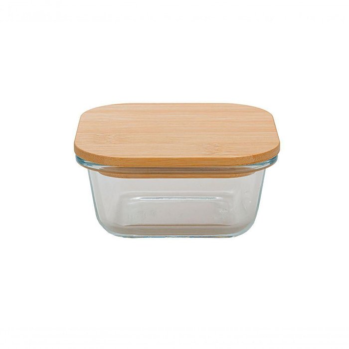 Pote Quadrado Vidro Boro com Tampa Bambu 310 Ml Mimo Style Única