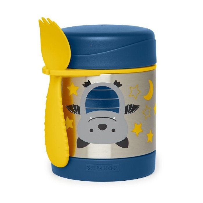 O Pote Térmico Zoo Skip Hop é indispensável para quem pensa em praticidade com estilo! Super resistente, feito em Aço Inox, mantém a temperatura de alimentos e bebidas por 5 horas para quente e por 7 horas para frio. É ideal para levar em viagens, passeios e até mesmo para a escola pois mantém as frutas frescas e comidas sempre quentinhas! A tampa tem uma borracha para vedação. Vem com utensílio que tem a função de garfo e colher ao mesmo tempo! Além de tudo isso, o design é único! Especificações Técnicas Idade recomendada: Desde o nascimento. Medidas e Peso aproximado do produto: 15 x 7 x 7 cm (A-L-P) 195 gramas. Material: Aço Inox, silicone e Plástico, livre de PVC, BPA e Phtalato; Higiene: sabão neutro, pode ir a máquina de lavar louça. Capacidade: 325 ml.