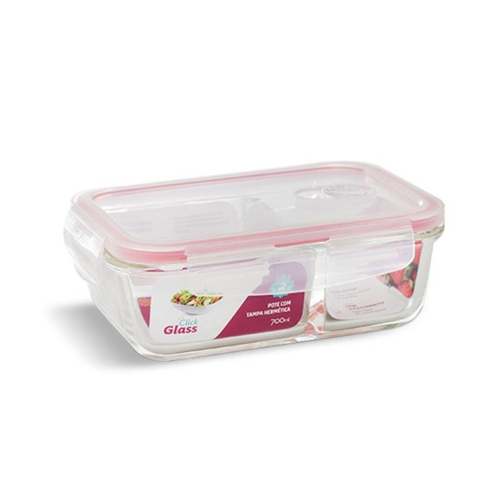 Pote Vidro Hermético Divisória Retangular 700ml Marmita