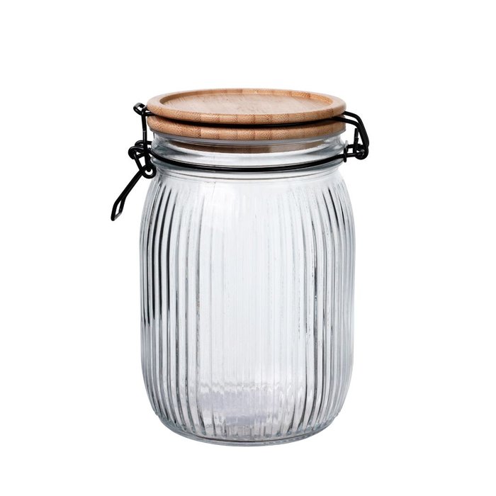 Pote Vidro Hermético Versalhes Tampa Bambu Trava Prime 1200ml - Lehaví