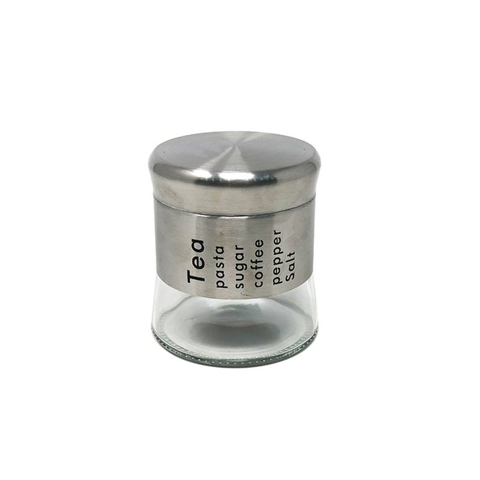Pote de vidro p/ chá baixo c/ tampa aço inox Tea 460ml 10cm