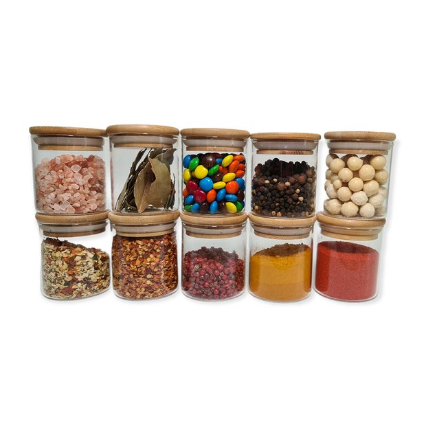 10 Unidades do POTE DE MANTIMENTOS DE 200ML COM TAMPA DE BAMBU – OIKOS