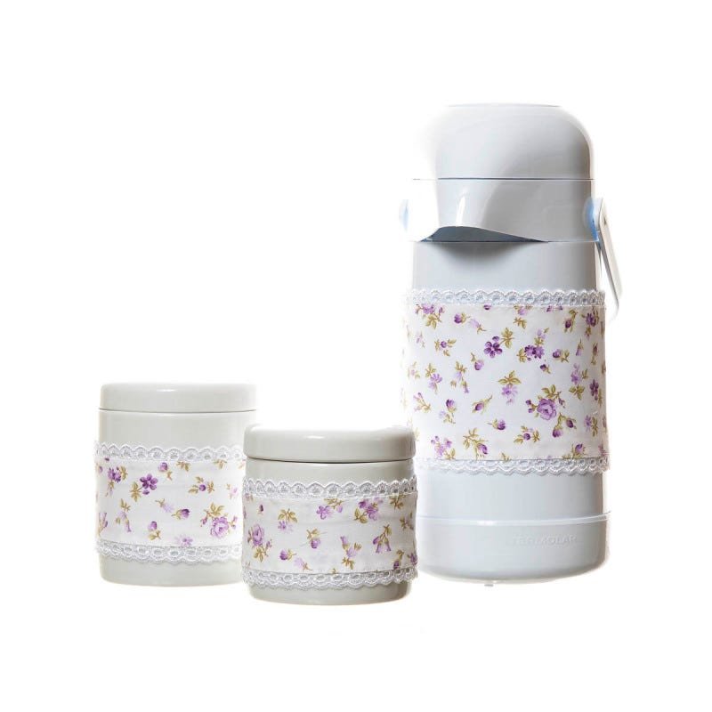 Potes e Garrafa com Capa Lilás Quarto Bebê Menina (conj. 3 Peças)