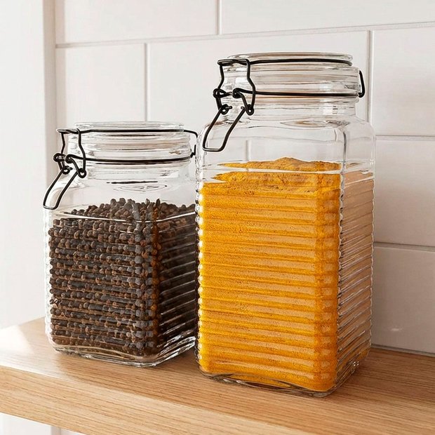 Potes Hermético Porta Mantimentos Vidro Clipe Metal Kit 2pçs -