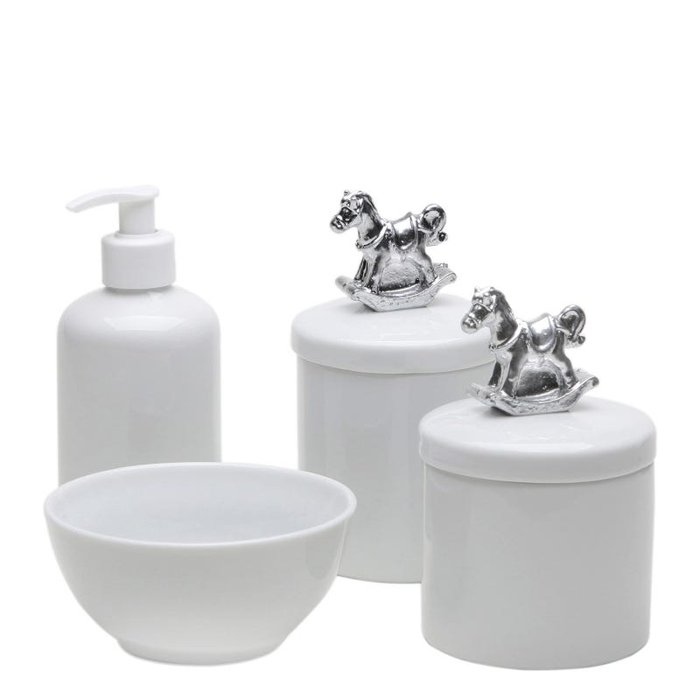 Potes, Molhadeira e Porta Álcool-Gel Cavalinho Prata Quarto Bebê Infantil Menina Menino