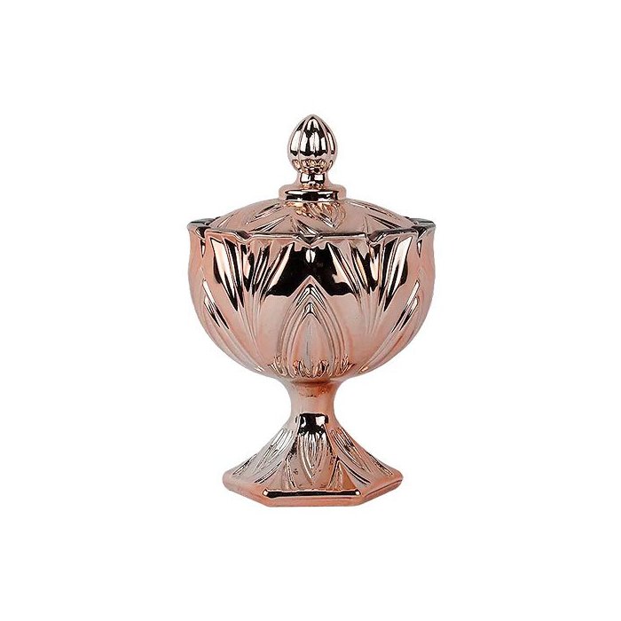 Saiba mais sobre a Potiche Bomboniere Decorativa Porta Doces em Cristal C/Tampa Rose Metálico Pronto a Entrega: