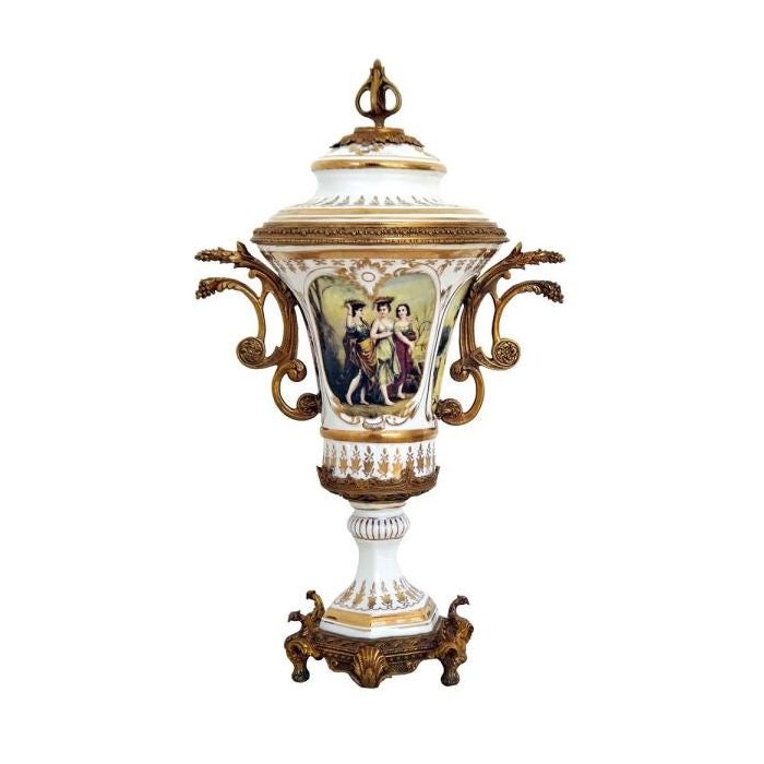 Potiche em Porcelana Branca Limoges Acabamentos em Bronze