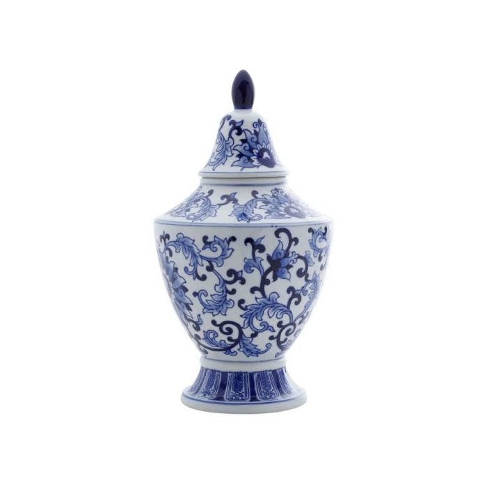 Potiche Ornamental Estilo Persa com Tampa - Azul e Branco Médio